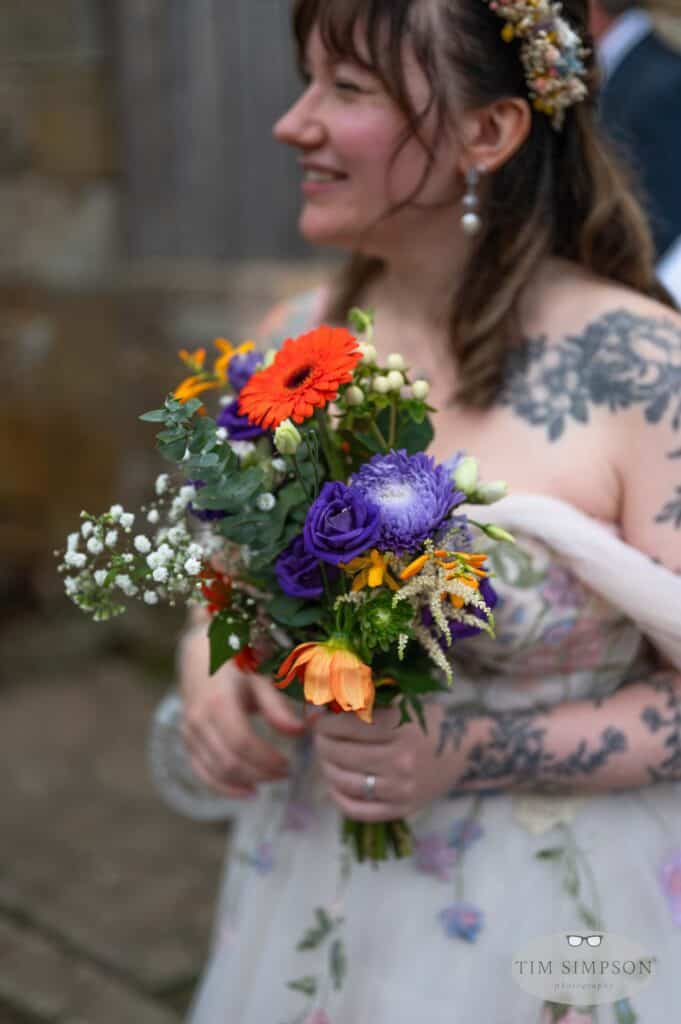 Kim wore a gorgeous dress (by Fifi Bridal) that reflected her personality perfectly, complementing her tattoos and natural style. During the ceremony, one of the standout moments was a beautifully delivered poem by Josh’s Nan Margaret, which brought warmth quite a few laughs to the day. Later, she performed another poem during the marquee reception, and again it was a highlight for everyone.